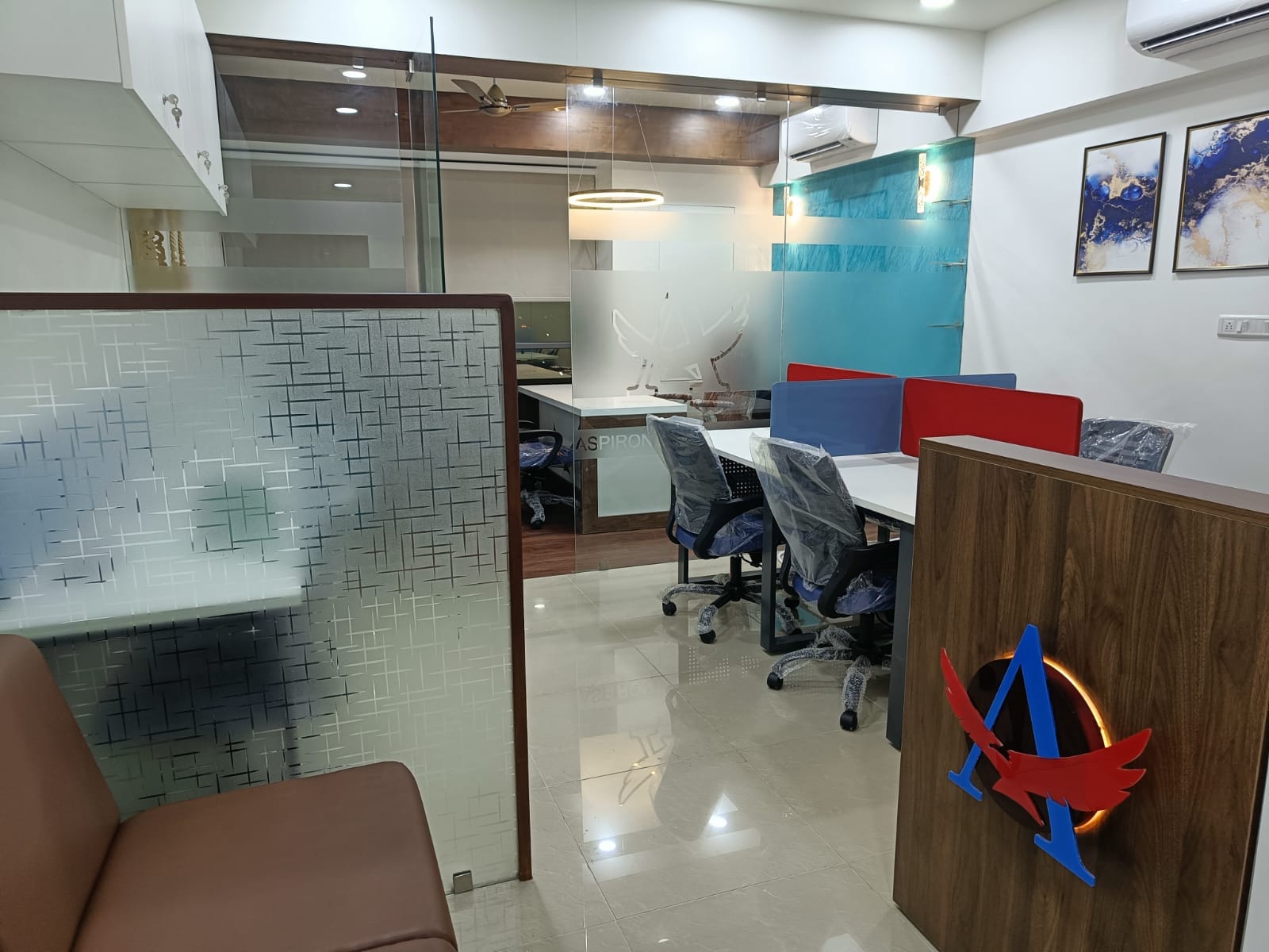 With a team of six and an office located on a higher floor overlooking a vast open field, the client envisioned a workspace that felt fresh and uplifting. The challenge was to break away from the typical wall-facing seating layout and create a design where everyone could enjoy the expansive view through the large window, all while maintaining the functionality of the director’s cabin.
